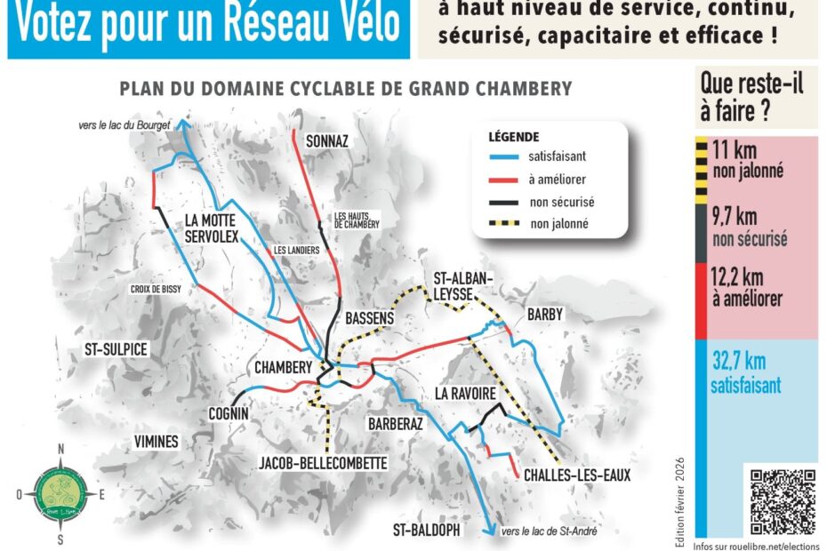 Elections municipales 2026 en Savoie : Faire des mobilités actives, une carte maîtresse du débat local ! Habitantes et habitants : interpellez les candidates et candidats de vos communes pour qu’ils s’engagent en faveur de rues… Lire la suite »Élections 2026 : faire du vélo une carte maîtresse du débat local