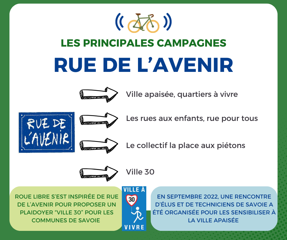 Depuis 1988, Rue de l’avenir s’est fixé l’objectif de contribuer à transmettre aux générations futures une ville plus sûre, plus solidaire et plus agréable à vivre.